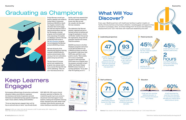 Every year, Medline partners with healthcare facilities to gather insights on facility clinical practices and product utilization, revealing gaps and opportunities to build on successes. Here, we share findings from 54 acute care Discovery Assessments and 1,631 interviews with healthcare leadership and staff. 1